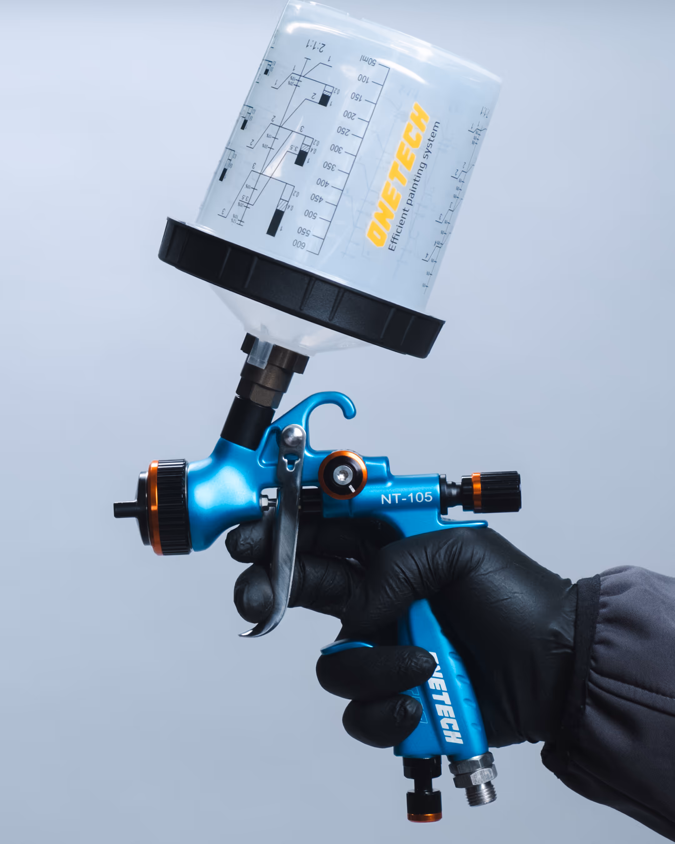 - NT10-105 – premium-class gun for topcoats, basecoats, and clearcoats; suitable for both waterborne and solvent-based materials.